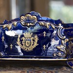 French centre-piece in cobalt blue and gold porcelain. Nineteenth Century.